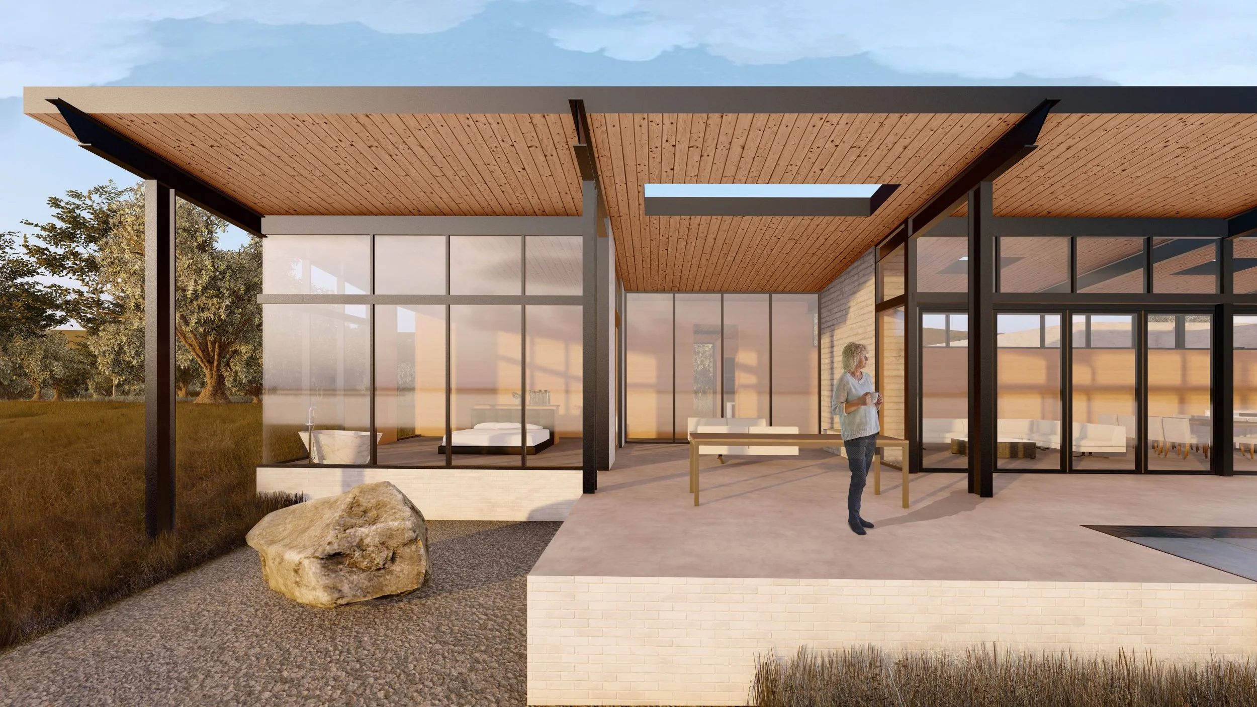 As the name suggests, the site is on what was previously a working quarry that has since been reclaimed into a series of artificial lakes, wetlands, and meadows. A transparent bar facing the southern lake contains living and resting spaces. The main spaces look upon the incredible views of the mountains while aligning with the natural edge of the topography. Solid masses such as the garage, mudroom, and bathrooms shift on either side to create an internal courtyard that offers a transition space between the residence and the natural site. The courtyard allows connection to the history of the site and furthers the dialogue between the site and the home.